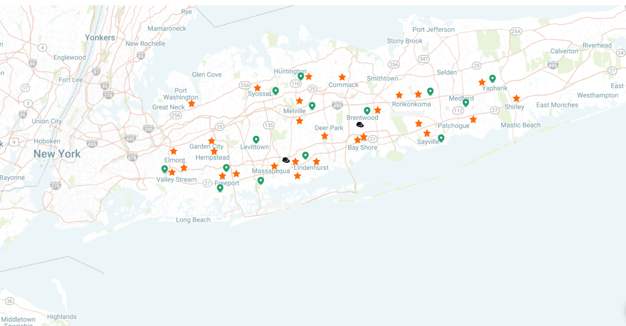 Bayville, Centerport, Cold Spring Harbor, Glen Cove, Great Neck, Kings Park, Locust Valley, Manhasset, Northport, North Hempstead, Oyster Bay, Port Washington, Sea Cliff, Smithtown